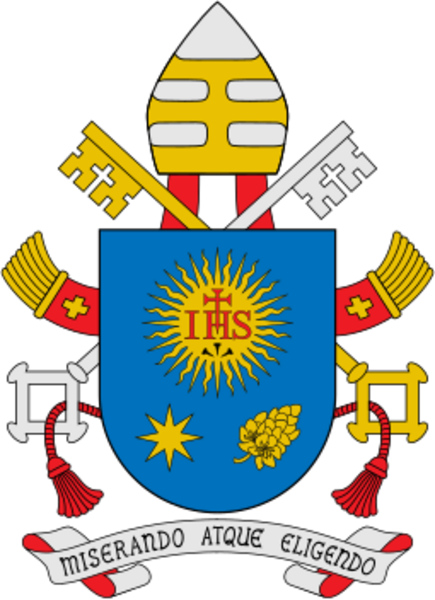 Lebenslauf: Jorge Mario Bergoglio wird am 17. Dezember 1936 in der argentinischen Hauptstadt Buenos Aires (spanisch: gute Lüfte) als Sohn piemontesischer Immigranten geboren: Sein Vater Mario ist als Buchhalter bei der Eisenbahn angestellt, während seine Mutter, Regina Sivori, sich um den Haushalt und die Erziehung der 5 Kinder kümmert. Nachdem er ein Diplom als Chemietechniker erworben hat, entscheidet er sich für den Weg des Priestertums und geht in das Diözesanseminar von Villa Devoto, einem Stadtteil im Westen von Buenos Aires. Am 11. März 1958 tritt er in das Noviziat der Gesellschaft Jesu ein. Seine humanistischen Studien vervollständigt er in Chile und erwirbt 1963, nach seiner Rückkehr nach Argentinien, den Abschluss in Philosophie am Kolleg San José in San Miguel. Von 1964 bis 1965 ist er Professor für Literatur und Psychologie im Kolleg der Immaculata von Santa Fé, und 1966 unterrichtet er dieselben Fächer im Kolleg San Salvador in Buenos Aires. Von 1967 bis 1970 studiert er Theologie und schliesst dieses Studium ebenfalls am Kolleg San José ab. Am 13. Dezember 1969 wird er von Erzbischof Ramón José Castellano zum Priester geweiht. Von 1970 bis 1971 setzt er seine Ausbildung in Alcalá de Herrares in Spanien fort, und am 22. April 1973 legt er die Ewige Profess bei den Jesuiten ab. Wieder in Argentinien, wird er Novizenmeister in Villa Barilari in San Miguel, Professor an der Theologischen Fakultät, Konsultor der Jesuitenprovinz und auch Rektor des Kollegs. Am 31. Juli 1973 wird er zum Provinzial der Jesuiten in Argentinien gewählt, ein Amt, das er 6 Jahre lang innehat. Anschliessend nimmt er seine Tätigkeit im universitären Bereich wieder auf und wird von 1980 bis 1986 Rektor des Kollegs San José und auch Pfarrer von San Miguel. 1985 geht er nach Deutschland, um seine Dissertation fertigzustellen. Anschliessend schicken ihn seine Oberen in das Kolleg San Salvador in Buenos Aires und später als geistlichen Begleiter und Beichtvater in die Jesuitenkirche der zentralargentinischen Grossstadt Córdoba. Es ist Kardinal Antonio Quarracino, der ihn als engen Mitarbeiter wieder nach Buenos Aires holt. Und so ernennt ihn Johannes Paul II. am 20. Mai 1992 zum Titularbischof von Auca und Weihbischof in Buenos Aires. Am 27. Juni empfängt er die Bischofsweihe durch Kardinal Quarracino. Als Motto wählt er „Miserando atque eligendo“ („mit Erbarmen und Erwählen“), und in das Wappen fügt er das Christogramm IHS ein, Symbol der Gesellschaft Jesu: